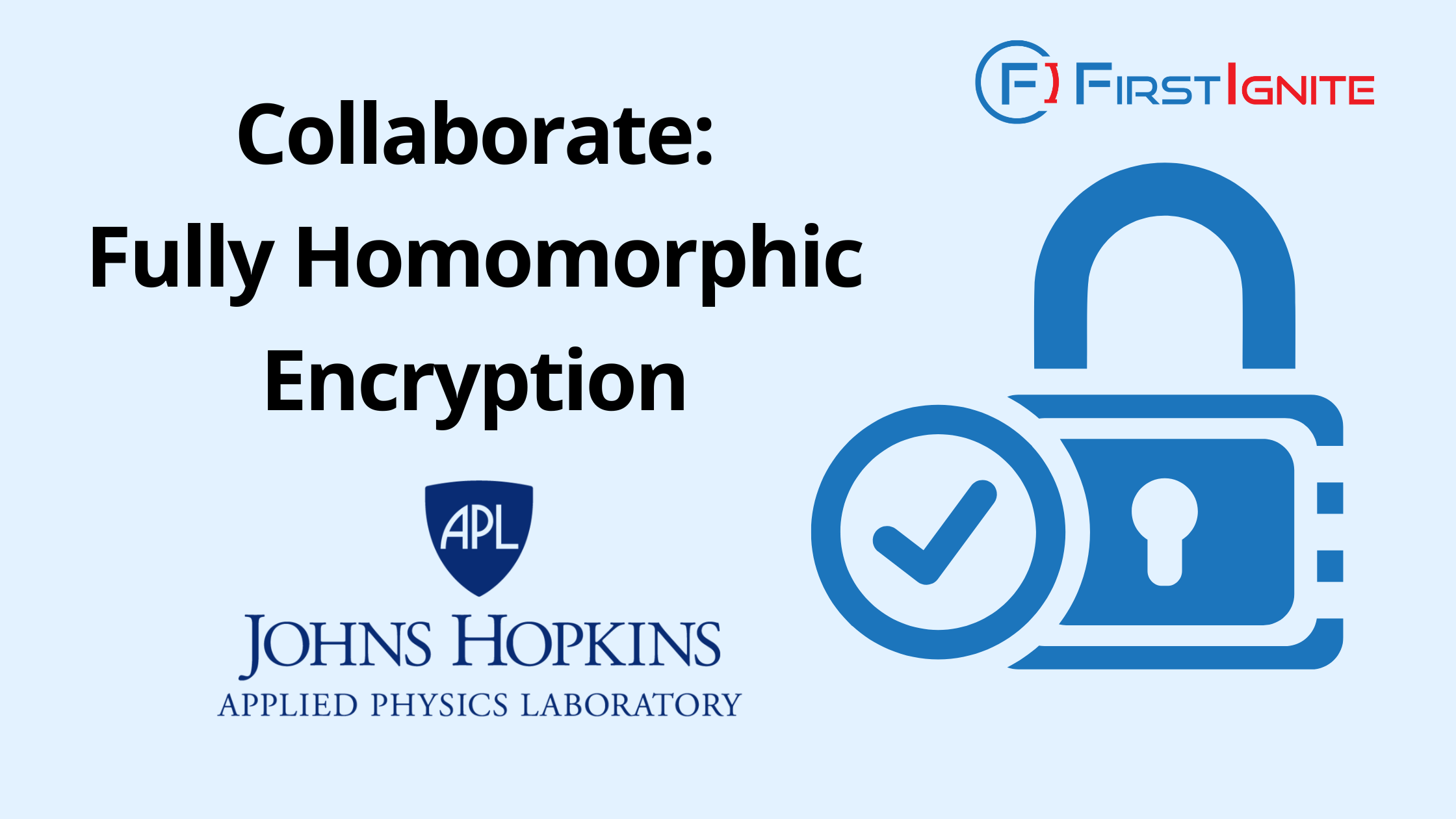 FirstIgnite is supporting the commercialization of Johns Hopkins University Applied Physics Laboratory’s new fully homomorphic encryption (FHE) technology, which enables data processing that does not compromise privacy, even in the face of capable and determined cyber adversaries. This form of encryption allows for computation and seamless querying of encrypted data while safeguarding the underlying information.