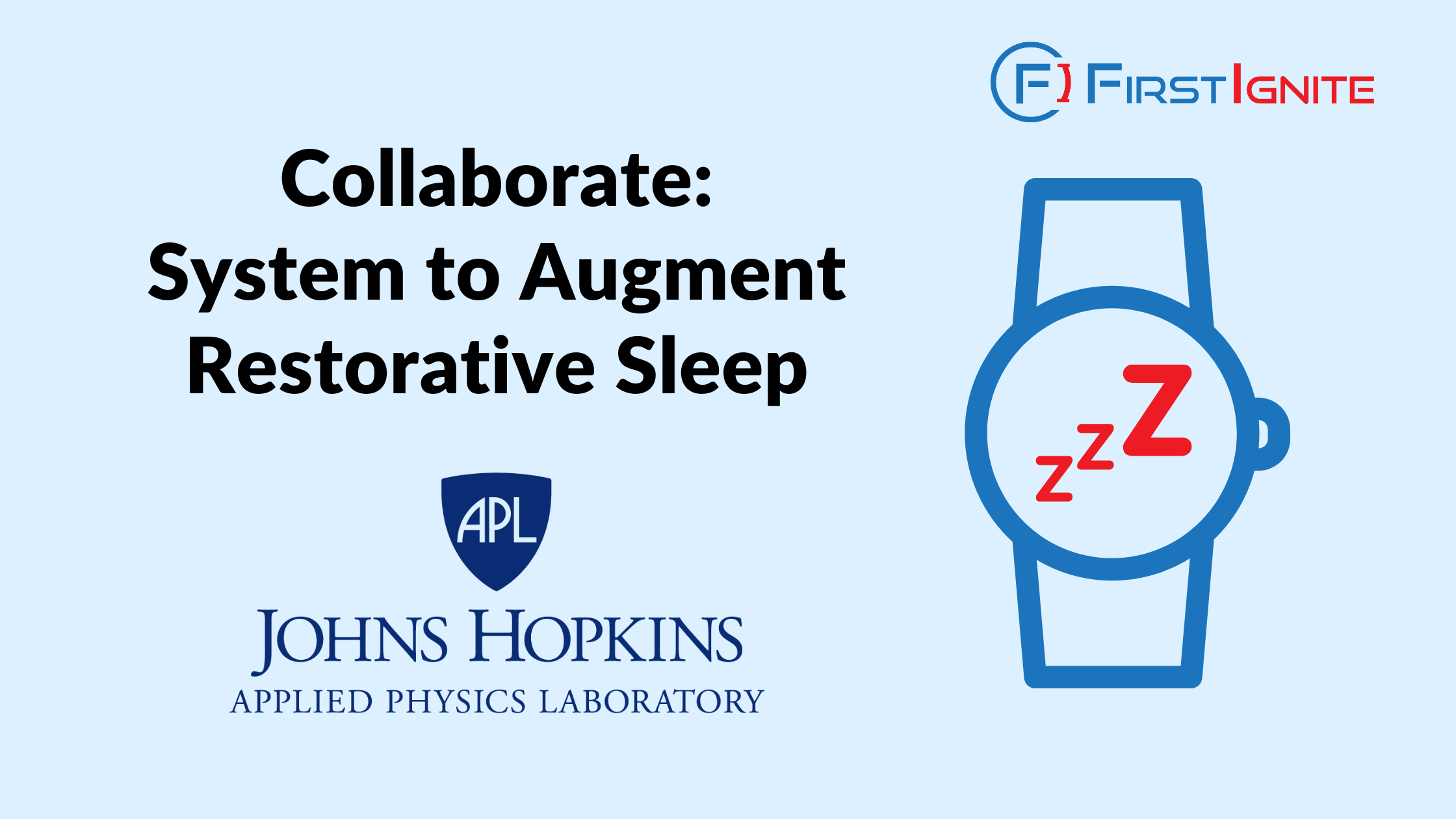 FirstIgnite is supporting the commercialization of Johns Hopkins University Applied Physics Laboratory’s system to augment restorative sleep. This technology is a wearable device that records brain signals during sleep, which are then decoded using artificial intelligence to stimulate or elicit brain wave patterns that are beneficial to the user’s health. This brain-computer interface enhances sleep monitoring, memory manipulation, and overall sleep quality.
